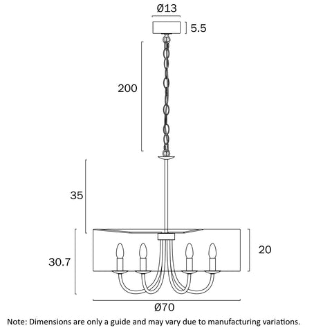 The Shiron Pendant Light is a perfect blend of classic elegance and modern sophistication. Available in both 4-light and 6-light options, this fixture beautifully balances timeless design with contemporary flair. Its sleek frame, offered in either dark nickel or brass, complements the soft, fabric drum shade, creating a warm and inviting ambiance. Designed for versatility, the Shiron comes with a 2-metre chain and is fully height adjustable, allowing you to customise it to suit your space perfectly. Whether you're looking to add a refined touch to your dining area, living space, or entryway, this pendant is a stylish statement piece that brings charm and character to any room.