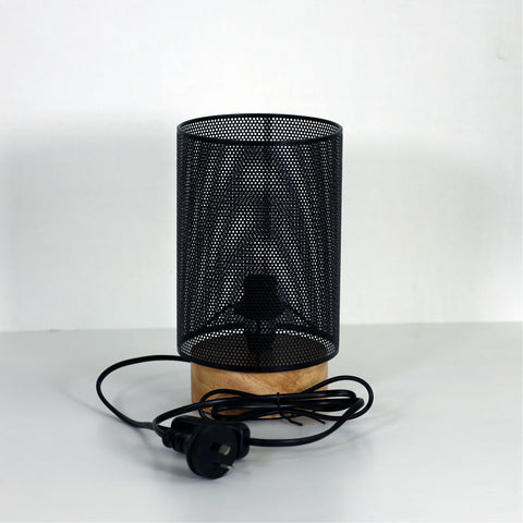 The LENNY Timber Base Black Mesh E14 Table Lamp combines Scandinavian style with an industrial edge. Its metal mesh shade rests upon a sleek timber base, offering a modern and unique twist on traditional table lamps. Available in various colours, it's the perfect bedside companion with a convenient cord switch.